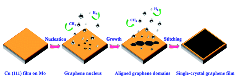 Fig. 1 單晶石墨烯薄膜生長過程示意圖。