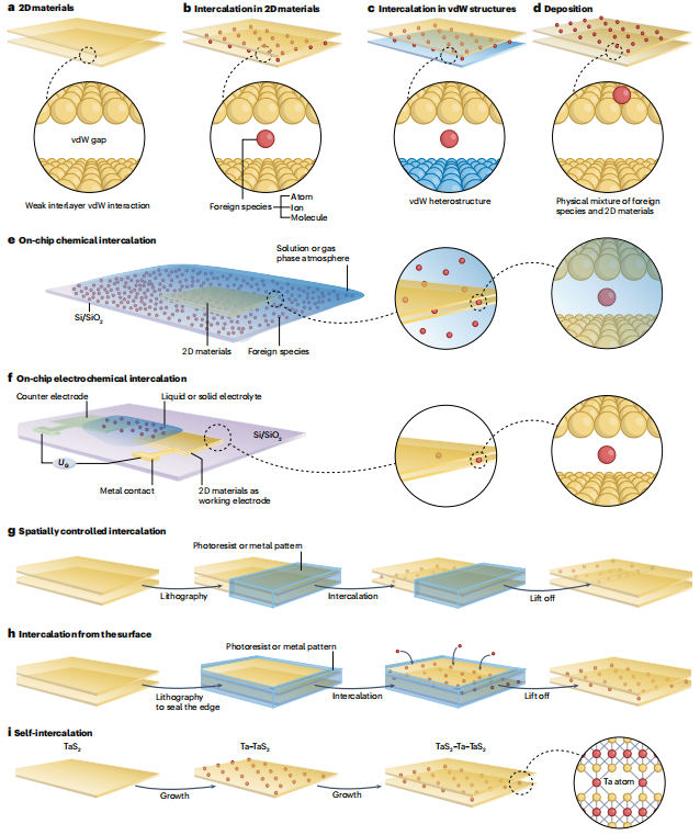 b 外來(lái)物種(原子、離子或分子)嵌入二維材料層間范德華間隙的過(guò)程。